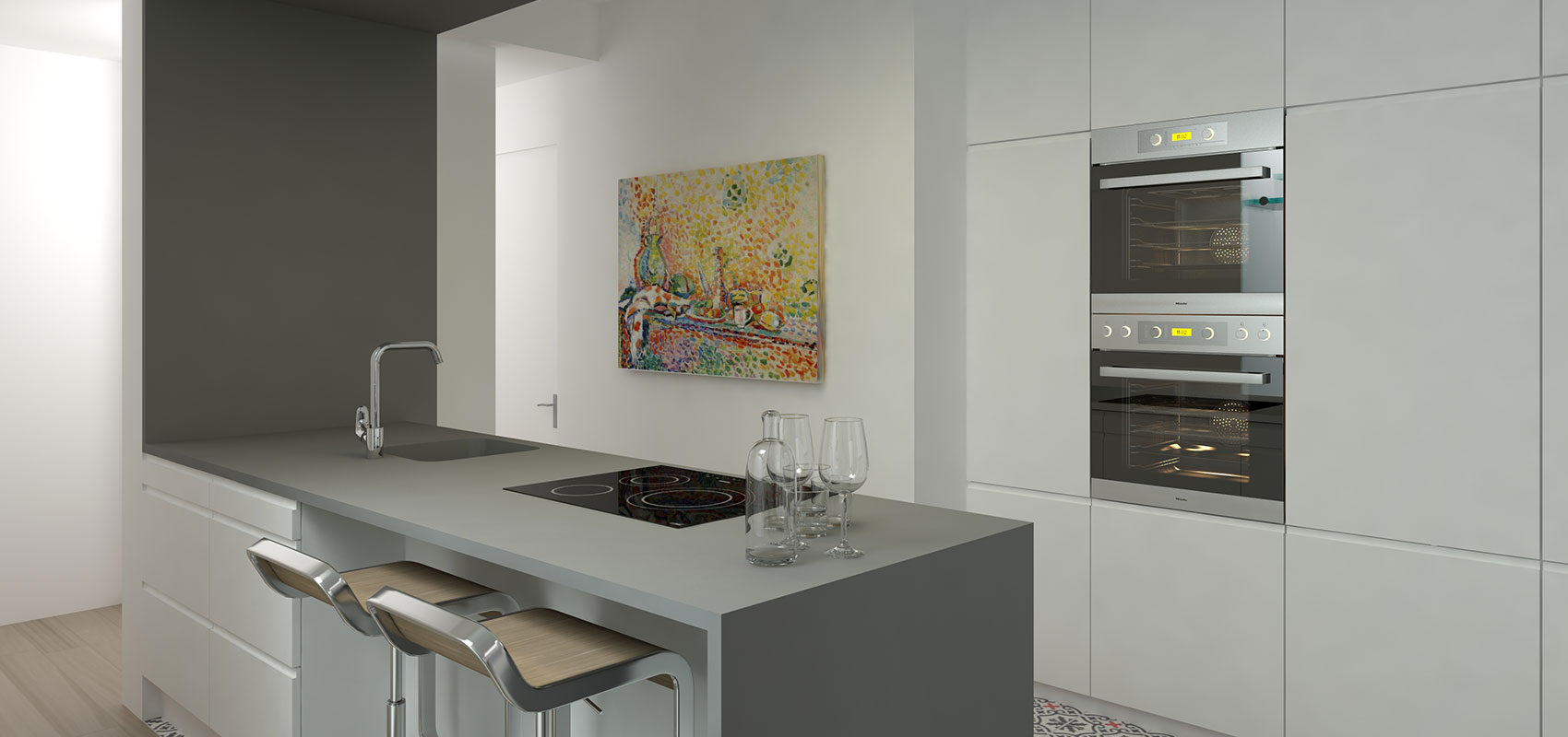 El interior de las viviendas ha sido realizado con materiales de primera calidad y diseño, desde sus enormes ventanales de doble cristal con excelente aislamiento acústico a los pavimentos de parqué flotante de madera natural. Los pisos dispondrán de suelo radiante, que constará de 4 circuitos independientes para cada una de las estancias de la vivienda.