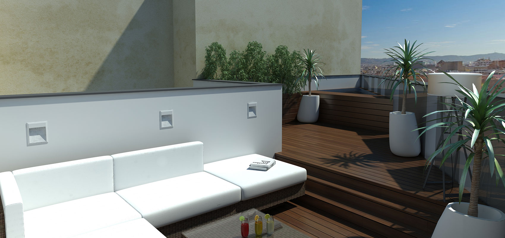 El edificio cuenta con una terraza con increíbles vistas, dividida entre una zona comunitaria y una zona de uso privativo de 33m2 para la vivienda de la 5ª planta.